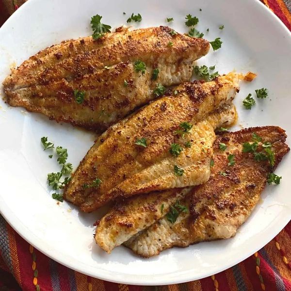 Generously sprinkle seasoning on both sides of the fish fillets, pressing into flesh as needed.